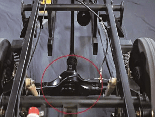 中軸技術(shù)源起何方?萬虎工業(yè)為何執(zhí)著開發(fā)中軸技術(shù)呢?目前市面上的三輪摩托車基本以偏軸三輪車為主,輸出傳動軸位置偏向左側(cè),輸出配重難以做到均衡,這對整車行駛過程中的平穩(wěn)性和舒適性提出很高的要求,甚至會影響到轉(zhuǎn)彎時的安全性。其實軸傳動輸出的問題早已在汽車行業(yè)解決,那就是發(fā)動機動力輸出,后橋1:1配置,于是萬虎工業(yè)率先提出在三輪摩托車使用中軸的概念,并利用自身的研發(fā)優(yōu)勢付之為現(xiàn)實。如圖所示: